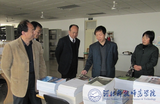 图为辛校长一行考察图书馆期刊室