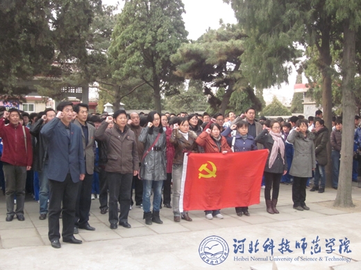 4月1日上午,园艺科技学院党委组织全体教工党员和入党积极分子到昌黎烈士陵园举行了“祭扫烈士墓、重温入党誓词”活动。活动由园艺科技学院党委组织委员王学东同志主持。