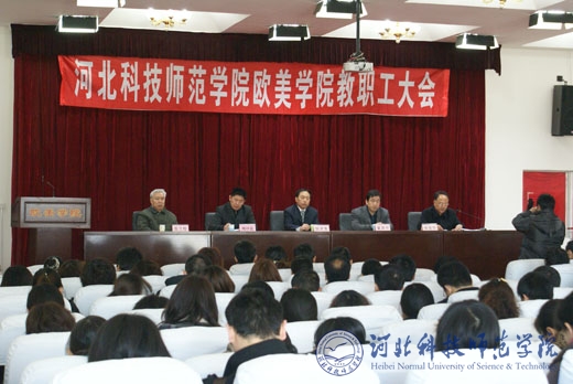 2011年3月10日上午,欧美学院召开全体教职工大会,安排部署新学期的各项工作。欧美学院党政领导杨洪青、周印富、张俊华、董洪平、高兰栓及全体教职员工参加了大会。