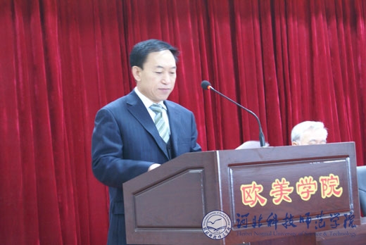 图为 欧美学院院长周印富在会上讲话