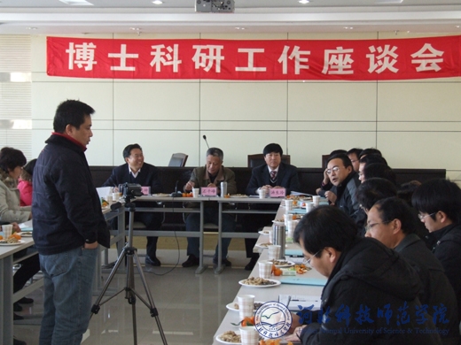 会上,科研处处长杨越冬通报了我校“十一五”期间科研工作的基本情况和今后的工作重点,科研处工作人员介绍了2011年国家自然科学基金项目申报和河北省科技奖励政策的调整情况。分析测试中心闫立英主任介绍了中心的基本情况和“十二五”发展目标。在座谈过程中,学校领导与博士们进行了深入交流与沟通,充分肯定了博士们的科研工作,认真听取了大家的意见和建议,并从不同角度向大家提出了希望和要求,现场协调解决了大家提出的一些问题。