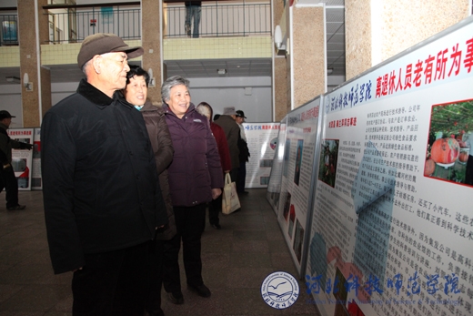 长期以来,我校广大离退休干部和教职工为我校的改革发展事业做出了重大贡献,他们是党和国家的宝贵财富,也是我校的宝贵财富。他们积极响应党组织的号召,按照自觉自愿、量力而行的原则,充分发挥自身的政治优势、经验优势、技能优势、知识优势,面向师生、面向社会,实现了真正意义上的“老有所为”,为社会和谐进步、为学校的改革发展奉献余热。他们当中有人受聘于教学岗位,结缘烛与蚕;有人自愿督导教学,育人成才;有的教授诗、书、画,传承中华文化;有的引领学生搞科研,不断创新;有的关爱中小学生,矢志哺育下一代…… 展出的一幅幅引人注目的彩照,组成一道道亮丽的风景;一张张慈祥可亲的笑容,展现着他们健康向上的精神风貌。