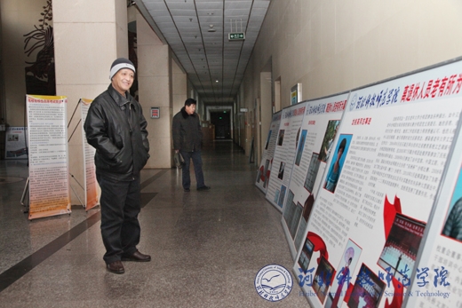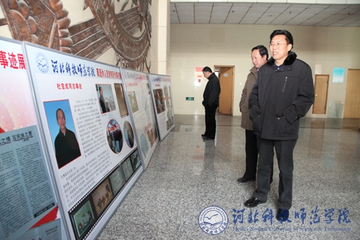 2010年12月29日至1月6日,我校离退休人员老有所为事迹展在昌黎校区和秦皇岛校区巡展,10日至15日将在开发区校区展出。展览展出了学校离退休老同志中的部分优秀代表的事迹。校党政领导石千峰、汤生玲、王同坤、宋绍富、孟令臣、刘泽义及党委组织部、党委宣传部等部门负责同志、部分离退休老同志、在校大学生等参观了展览。