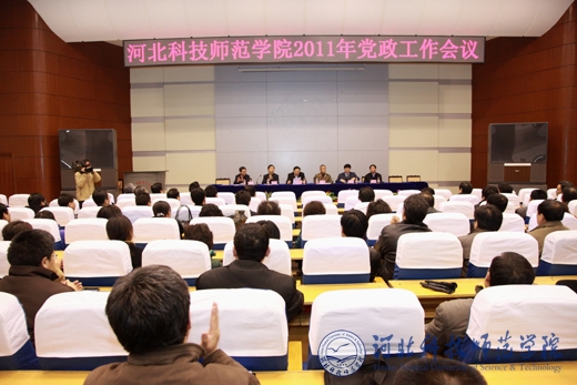 2011年3月4日下午,我校在秦皇岛校区学术报告厅召开2011年党政工作会议。会议分两个阶段进行:第一阶段会议的主要内容是宣布省委关于我校主要领导调整情况的决定;第二阶段会议的主要内容是传达省委省政府召开的几个重要会议精神,部署我校2011年党政重点工作。 省委教育工委副书记李春沛、省委组织部干部五处处长李兵、省委教育工委组干处处长霍炳泉等同志出席了第一个阶段的会议。校党委书记石千峰,新任校党委副书记、校长辛彦怀,前任校长汤生玲,校党委常委、副校长王同坤,校党委常委、纪委书记宋绍富,副校长房海、校党委常委刘泽义,校党委常委、欧美学院党委书记杨洪青,校长助理王子茂及全校中层以上干部、正高级职称人员参加了会议。会议由石千峰同志主持。