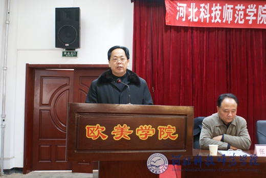 图为校党委常委、欧美学院党委书记杨洪青在会上讲话