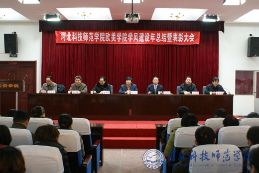 会上, 欧美学院党委副书记、副院长张俊华作《学风建设年总结报告》。教育长张小军宣读了《欧美学院2010年度学风建设年表彰决定》。先进教师代表胡阳、十佳标兵代表许晓杰分别汇报了在学风建设年活动中的先进经验和心得体会。欧美学院党委书记杨洪青就进一步巩固学风建设成果,建立长效机制提出几点意见:一是学风建设是学院建设的根本,必须常抓不懈;二是教风建设是学风建设的基础,必须一抓到底;三是政工队伍是学风建设的骨干,必须加强建设;四是班级建设是学风建设的主体,必须高度重视。