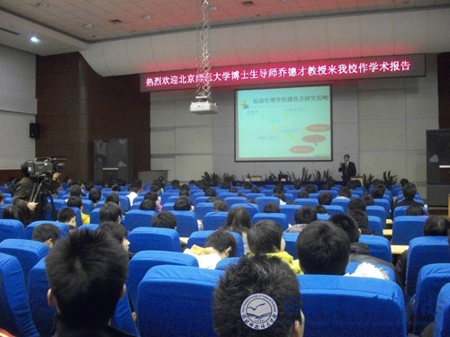 2010年11月10日,北京师范大学博士生导师乔德才教授来我校作 “运动生理学研究进展及发展趋势”的学术报告。体育系400多名师生认真聆听了报告,报告会由体育系主任陈庆合教授主持。