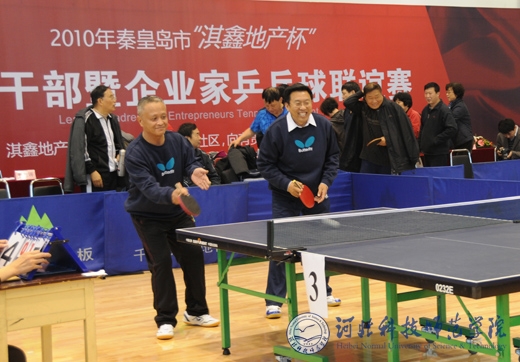 2010年10月30日至31日,秦皇岛市体育局、体育总会、老干部局联合主办的秦皇岛市“淇鑫地产杯”领导干部、企业家乒乓球联谊赛在市老干部活动中心举行。我校党政领导石千峰、汤生玲、王同坤、宋绍富、孟令臣以及4名处级干部参加了比赛。校工会具体组织了此项活动。