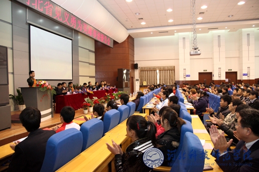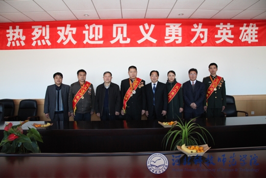 2010年11月8日,河北省见义勇为英雄事迹报告会在我校举行。河北省见义勇为基金会理事长李德兴,河北省见义勇为基金会副理事长、秘书长张子君,秦皇岛市政法委副书记、市综治办主任王秀成,我校副校长孟令臣,学工部部长、学生处处长田毅,学工部副部长、团委书记李艳坡等出席了报告会。党委宣传部部长赵宗宝主持了报告会。