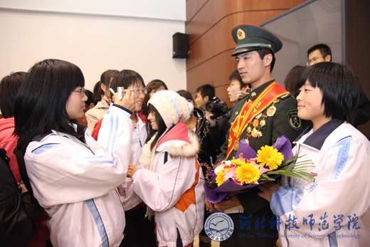 报告会上,阳光帅气、侠肝义胆的南方小伙儿谷岳潘,失去父爱却彰显大爱的坚强女儿刘端,路见不平勇斗歹徒的好兵习朝峰,宝刀不老舍己为人的常宝田等4位英模分别做了精彩的报告。他们的事迹深深打动了在场的每一位师生,他们朴素的语言和朴实的情感让同学们深深地感受到内心的震撼和共鸣。报告会结束后,热烈的掌声经久不息,在场的全体师生群体起立表达对英雄们的敬意。同学们纷纷与英雄们合影留念,并表示一定向英雄们学习,继承中华民族传统美德,弘扬见义勇为的伟大精神,临危不惧扬正气,除恶扬善树新风,做不愧于祖国和人民的新时代青年。