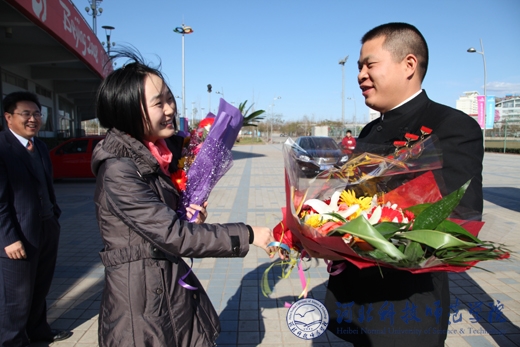 我校大学生向见义勇为英雄们敬献鲜花