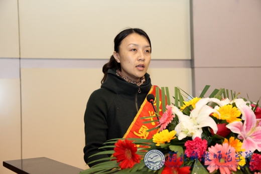 河北省见义勇为英雄刘均田烈士的女儿刘端在作英雄事迹报告