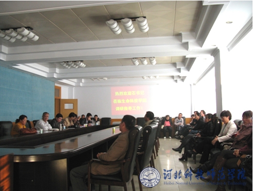 2010年10月14日下午,校党委书记石千峰在党办、校办李佩国主任的陪同下到生命科技学院调研指导工作,与生命科技学院全体班子成员和全体教师进行了座谈。