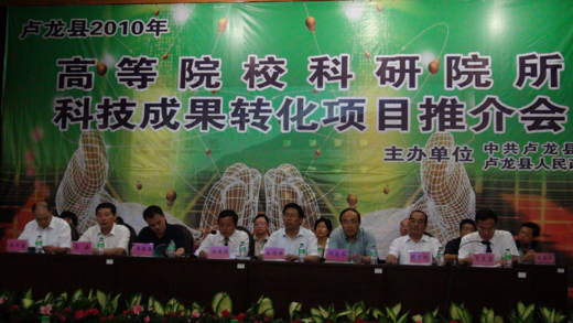 2010年9月16日,王同坤副校长带领科研处、园艺科技学院、食品科技学院的有关科技成果完成人一行5人,应邀参加了“卢龙县2010年高等院校科研院所科技成果转化项目推介会”。
