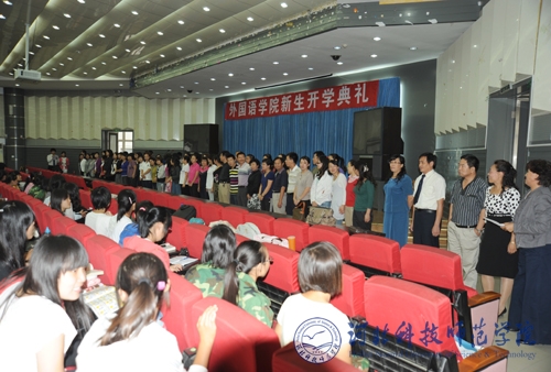 又是一个雏鹰新飞的时节,又是一个万物收获的季节,外国语学院迎来了408名新生。2010年9月16日,学院党政领导、全体教师和2010级全体新生在学术报告厅举行了新生开学典礼。