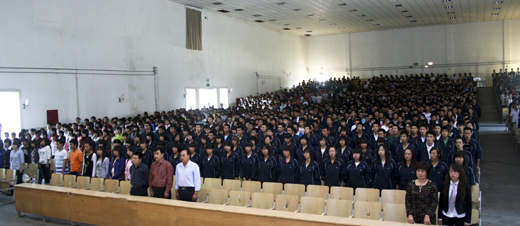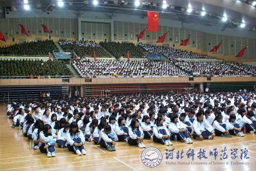 2010年9月19日,我校2010级新生开学典礼分别在秦皇岛、昌黎、开发区三个校区隆重举行。学校党政领导石千峰、汤生玲、王同坤、宋绍富、孟令臣、房海、刘泽义、杨洪青出席开学典礼。党委办公室、校长办公室、教务处、招生就业处、学生处、校区办、团委、各二级学院等部门和单位的主要负责同志及全校7485名新同学参加了典礼。李佩国、李彦生、李荣和三位同志分别主持三个校区的典礼。