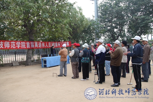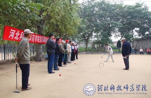 2010年9月26日,我校离退休人员首届“健康杯”门球赛在昌黎校区开赛。昌黎校区办主任李彦生,离退休人员党总支书记、离退休人员管理办公室主任温玉甫,原离退休人员党总支书记、离退休人员管理办公室主任李秀山及全体工作人员到场观看比赛。秦皇岛校区、昌黎校区共50余名离退休运动员组成6个代表队参加了比赛。