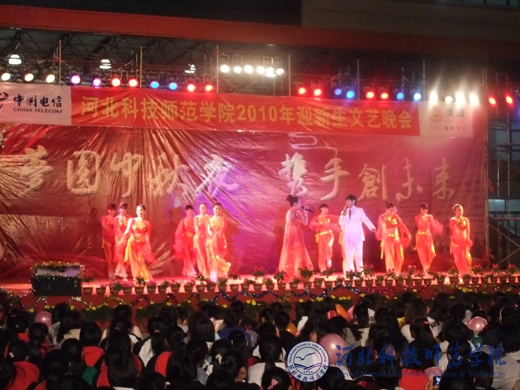 2010年9月25日、27日,我校分别在秦皇岛校区和开发区校区举行了2010年迎新生文艺晚会。本场晚会由党委学工部、团委主办,艺术学院、校学生会协办。校党委书记石千峰,副校长孟令臣,党委常委刘泽义,党委常委、欧美学院党委书记杨洪青以及有关部门、各院(系、部)领导老师亲临晚会现场,与全体新生共同观看了演出。