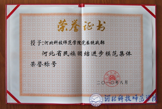 2010年9月28日,河北省第六次民族团结进步表彰大会在省会石家庄召开。我校党委统战部被河北省人民政府授予“河北省民族团结进步模范集体”荣誉称号。