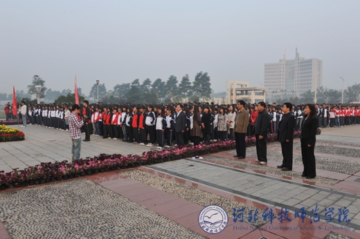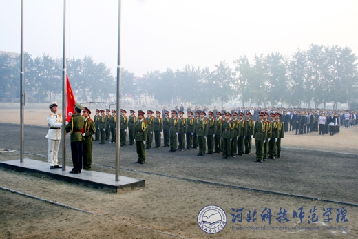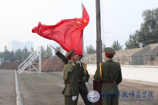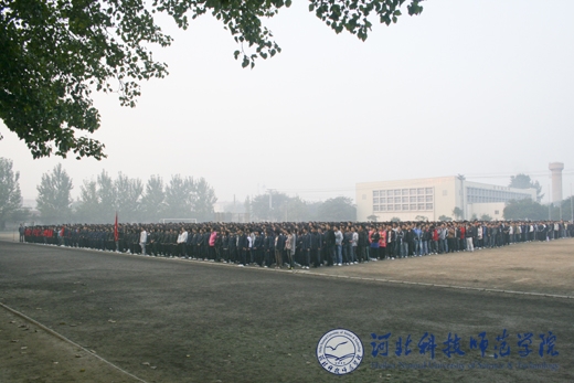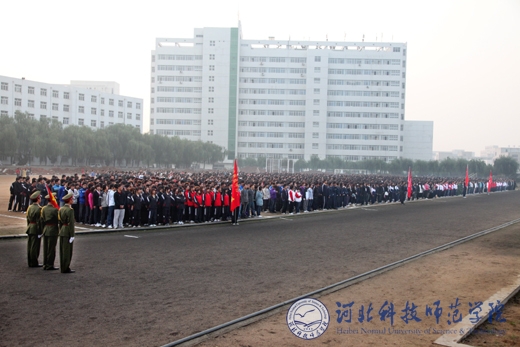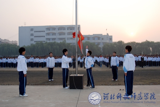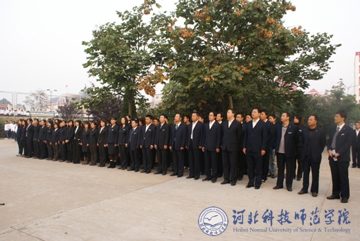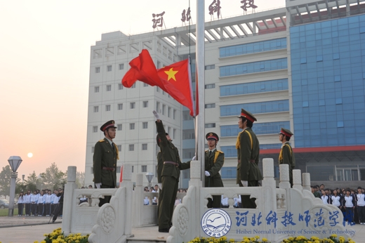 2010年10月8日早晨6时40分,按照省委创先争优活动办公室的统一部署,我校“升国旗、唱国歌”仪式分别在秦皇岛校区、昌黎校区、开发区校区、欧美学院校区同时隆重举行。学校党政领导石千峰、王同坤、宋绍富、孟令臣、房海等分别参加了各校区的“升国旗、唱国歌”仪式并致辞。学校全体教职工和2万余名大学生参加了“升国旗、唱国歌”仪式。