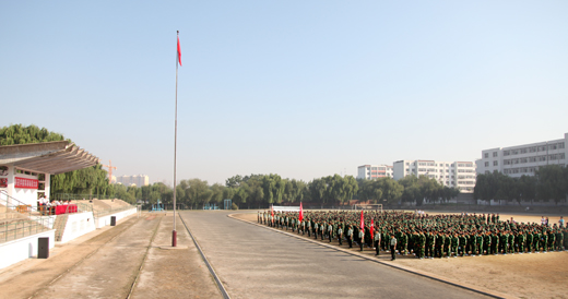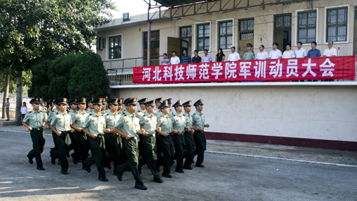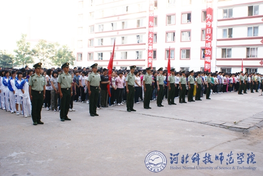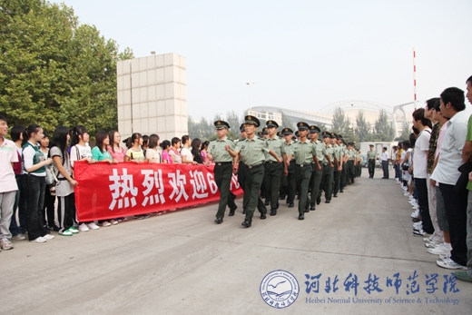 2010年9月12日,我校在秦皇岛校区举行了隆重的欢迎仪式,热烈欢迎部队官兵来我校为2010级新同学进行军训。