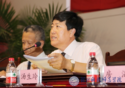 图为党委副书记、校长汤生玲同志主持会议并讲话