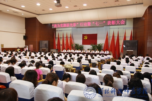 2010年7月2日,我校在秦皇岛校区隆重举行“我为党旗添光彩”行动暨“七•一”表彰大会。学校党政领导石千峰、汤生玲、孟令臣、房海、刘泽义、杨洪青,校长助理王子茂出席大会,党委办公室、校长办公室、组织部、宣传部、统战部、学工部等部门负责同志及各基层党委(党总支)书记、副书记,各党支部书记,受表彰的教工和学生优秀共产党员代表、优秀党务工作者,教工和学生党员代表等共400余人参加了大会。会议由党委副书记、校长汤生玲同志主持。