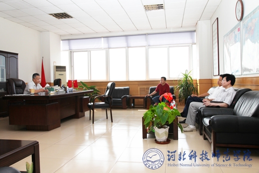 图为党委书记石千峰会见潘光记者和姜明文编辑