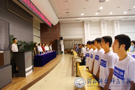 2010年7月8日,我校2010年暑期“文化、科技、卫生”三下乡社会实践活动启动仪式在秦皇岛校区学术报告厅举行。副校长孟令臣出席启动仪式。党委办公室、校长办公室主任李佩国,党委宣传部部长赵宗宝,党委学工部部长、学生处处长田毅,教务处处长武士勋,党委学工部副部长、团委书记李艳坡与各二级学院主管学生工作的领导,各院(系)团委(团总支)书记及500余名社会实践小分队成员和分散实践的同学代表参加了启动仪式。