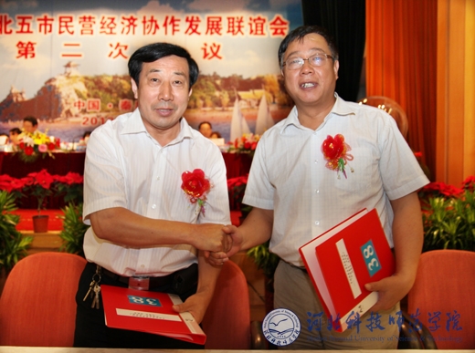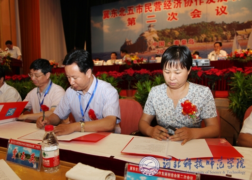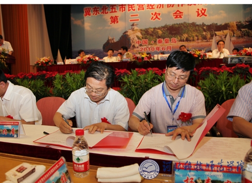 2010年6月22日,冀东北五市(唐山市、张家口市、廊坊市、承德市、秦皇岛市)民营经济协作发展联谊会第二次会议在北戴河召开。唐山、张家口、廊坊、承德、秦皇岛五市的统战部、工商联负责人,民营企业家代表,北京、天津等地代表及驻秦本科院校党委统战部负责人参加了会议,会议共促成和推进各类项目126个,总投资380多亿元,签约项目40个,总投资165.5亿元。省委常委、省委统战部长刘永瑞参加了会议并作重要讲话、秦皇岛市市长朱浩文致欢迎辞。我校项殿芳、闫立英、王凤宝、高海生、李军、李彦生、王文颇、于泉林等教师的七个项目在会上签约。