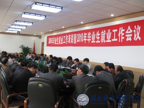 2010年5月5日下午,我校在秦皇岛校区召开2009年毕业生就业工作表彰暨2010年毕业生就业工作会议。校党委书记石千峰、副校长孟令臣出席会议,招生就业处、党委办公室、校长办公室、保卫处、教务处、学生处、财务处等职能部门领导和各二级学院院长(系主任)及主管就业工作的领导参加了会议。会议由孟令臣副校长主持。