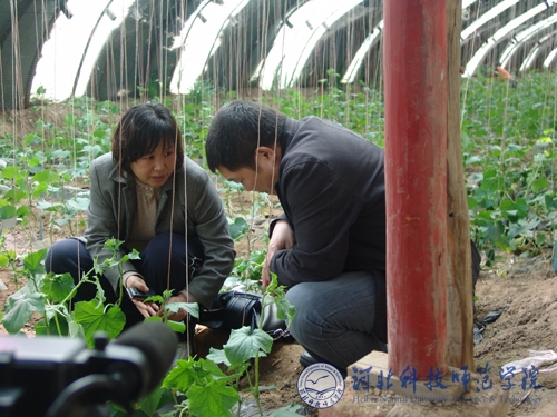 2010年4月27日,秦皇岛电视台、《秦皇岛日报》记者一行4人到我校闫立英教授主持研发的保护地专用丰产“绿岛”系列旱黄瓜新品种中试与示范推广基地——昌黎县靖安镇马芳营村进行实地采访。校党委宣传部、科研处相关负责同志组织了此次采访活动。