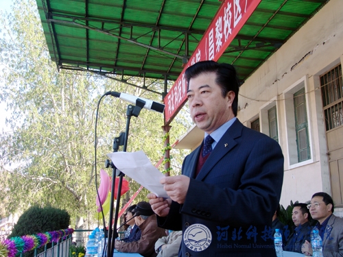 图为学校体育运动委员会主任、副校长房海致开幕词