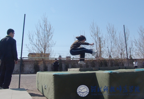图为学生女子组立定跳远比赛