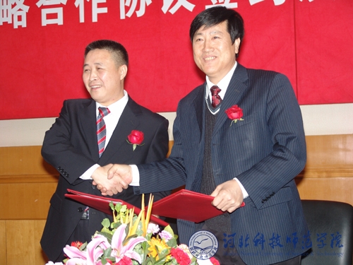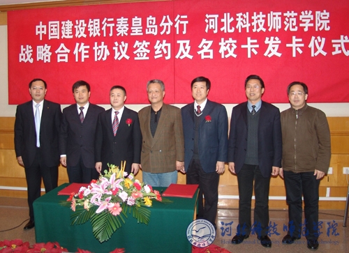 2010年3月16日,我校与中国建设银行秦皇岛分行战略合作协议签约暨名校卡发放仪式隆重举行。我校党委书记石千峰,校长汤生玲,党委常委、副校长王同坤,副校长孟令臣,党委常委、欧美学院党委书记、院长杨洪青及相关部门负责同志出席了签约仪式。仪式由王同坤副校长主持。
