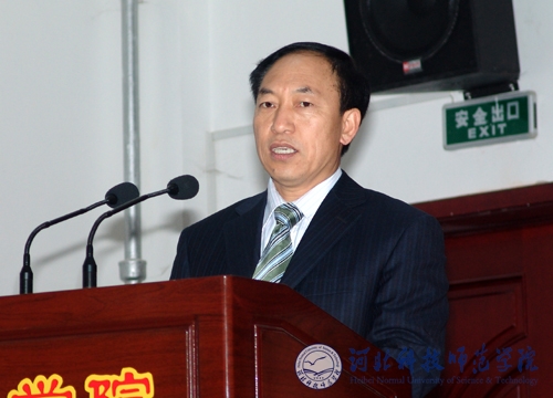 图为校党委常委、欧美学院党委书记、院长杨洪青同志在会上讲话