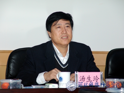 图为汤生玲校长在座谈会上介绍我校概况及改革与发展情况