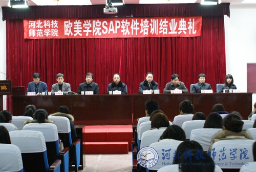 2010年1月14日,我校欧美学院举行2009学年SAP软件培训班结业典礼。欧美学院党政领导、秦皇岛泰信公司负责人以及商务管理系财会类专业师生共200余人参加了会议。会议由欧美学院秘书长吴子国主持。