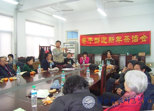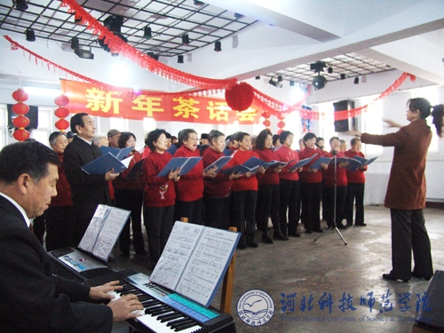 2009年12月26日、29日、30日,我校离退休老同志迎新年茶话会分别在秦皇岛校区、昌黎校区和开发区校区老干部活动中心举行。纪委书记宋绍富、昌黎校区办公室主任刘卫东等到会祝贺,离退休人员管理办公室党总支书记、主任温玉甫向到会的离退休老同志致新年贺词,秦皇岛校区、昌黎校区和开发区校区的离退休老同志分别在三个校区参加了茶话会并表演了歌曲、舞蹈、诗朗诵、器乐演奏等节目,活动始终洋溢在温馨和谐的氛围中。