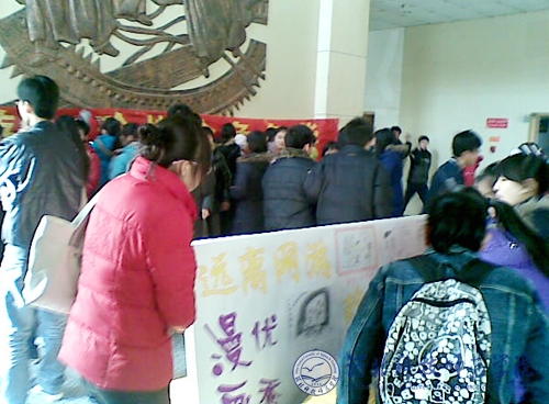2009年12月14日至28日,数学与信息科技学院在秦皇校区开展了 “远离网游,珍惜金色年华”主题漫画展和签名活动。活动共展出该学院大学生优秀漫画作品25幅,学院师生在写有“远离网游,珍惜金色年华”的横幅上签名。崔勇、马国光、申玉发、于洪奎、肖欣等数学与信息科技学院领导到活动现场进行了指导。