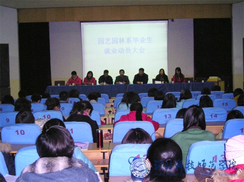2009年11月25日晚,园艺科技学院在昌黎校区学术报告厅召开毕业生就业动员会议。园艺科技学院党委副书记、副主任李佩忠以及学工办全体工作人员、毕业班辅导员、全体毕业生共300余人参加了会议。