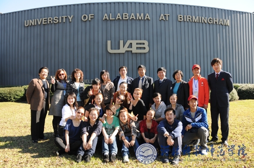 2009年11月10日,我校赴美国文化交流代表团一行25人在校长助理王子茂团长和国际交流处处长李佩国副团长的带领下,于美国当地时间11月10日抵达美国首都华盛顿。11月15日晚上7点至9点代表团在阿拉巴马州立大学伯明翰校区(UAB)进行了首场交流演出。
