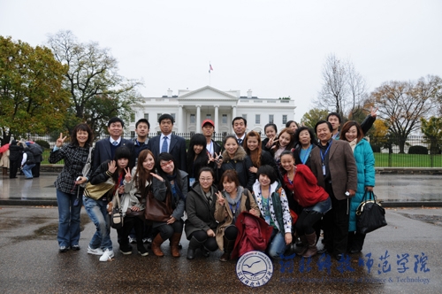 代表团在美国首都华盛顿白宫前留影