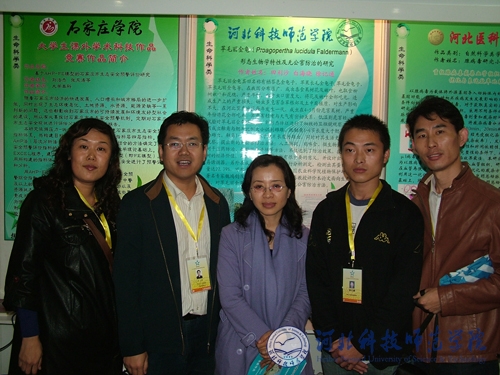 在全国终身决赛期间,副院长孟令臣同志专程赶到北京航空航天大学,在参加完第十一届“挑战杯”全国大学生课外学术科技作品竞赛开幕式后,亲切看望了我校参加比赛的同学。在比赛现场他鼓励同学们要沉着应对,全情发挥,要赛出风采,赛出水平,力争取得优异的成绩。同时,就比赛过程中,就如何面对专家质询,如何更简洁、明快的将作品的创新点阐述给专家评审,都进行了悉心的指导!最后,由我校张洪喜教授指导,园艺园林系田利沙、白海晓、徐记通等三位同学撰写的论文《苹毛丽金龟形态生物学特性及无公害防治》,经过资格审查、全国复审、终审决赛,最终获得全国三等奖。除此之外,为丰富“挑战杯”竞赛内容、拓展竞赛平台,本届竞赛主办单位联合上海世博局设立了世博专项竞赛。全国共有91件作品参加了展示,在河北省参展的3件作品中,由我校王东军教授指导,化学系祁昊楠等同学撰写的论文《一种新型形状记忆材料的制备及其在热敏电路中的应用研究》,不负众望,获得了世博类专项全国一等奖的好成绩。