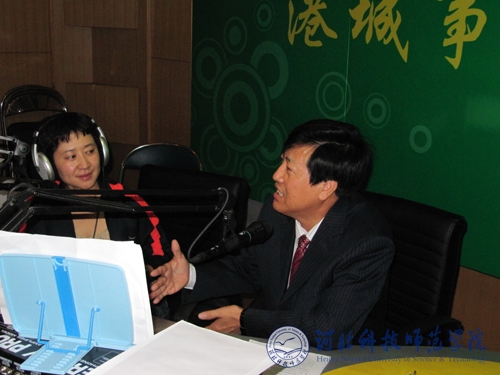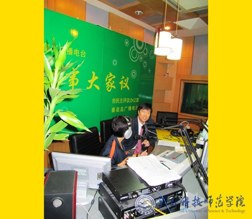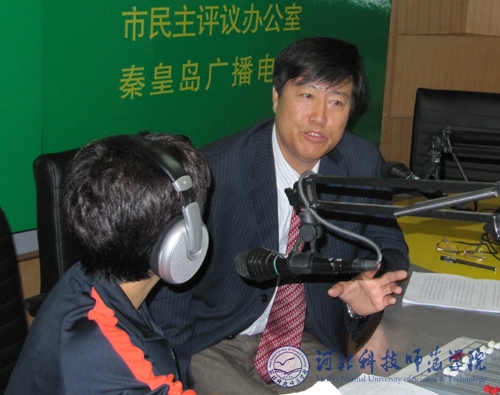 2009年10月18日上午,院长汤生玲教授来到秦皇岛广播电台“港城事 大家议”栏目直播间,参加了《聆听记忆的回响》第九期节目的直播。上午八点整,直播在校园歌曲《外婆的澎湖湾》的旋律中正式开始,节目主持人马丽蕊首先介绍了本期节目的主要内容,随后汤生玲院长在与主持人的交谈中回忆了难忘的大学生活,回顾了秦皇岛市高等教育特别是我校的发展历程和建设成就,向关心支持高等教育发展的秦皇岛市委市政府及社会各界表示感谢,并向工作在各条战线、一直关注学校建设发展的广大校友致以真诚的问候。节目在轻松愉快的气氛中进行,汤生玲院长回顾中的点点滴滴也引起了广大听众对往事的回忆,热线电话不断打到直播间,汤院长就热心听众提出的问题进行了细致的解答,同时欢迎广大听众朋友到学校参观访问。