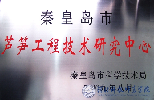 图为我校被认定的秦皇岛市芦笋工程技术研究中心荣誉牌