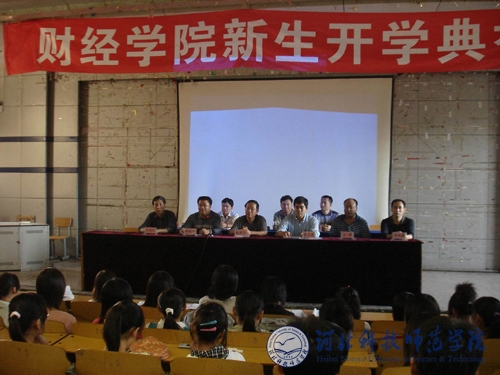 2009年9月15日下午,财经学院在1号教学楼104室举行2009级新生开学典礼。财经学院党委书记张建宗、院长贾圣武、副院长徐祗坤及各教学部、实验室、办公室的相关教师参加了开学典礼。典礼由徐祗坤同志主持。贾圣武院长在典礼上介绍了学校历史、发展概况及办学理念,从大学生如何适应新环境、如何学习、如何做事等方面为新生指明了发展的方向。教师代表和新老同学代表分别在典礼上发言。张建宗书记做了总结发言,对新生提出了要求和希望,他要求同学们要不断提高素质,拓宽基础,培养良好的思想道德,为今后建功立业打下坚实地基础,将来成为祖国的建设者和接班人。