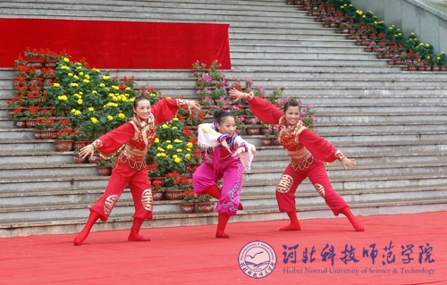 比赛开幕式在我校开发区校区主楼北侧广场举行,河北省民族宗教事务厅巡视员张兴堂、秦皇岛市人民政府副市长于复苓、我校党委书记石千峰、副院长房海等出席开幕式并观看了由我校艺术学院师生演出的精彩节目,开幕式由秦皇岛市民宗局局长于建华主持。