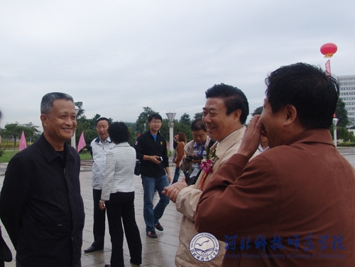 图为我校党委书记石千峰在开幕式前同河北省民族宗教事务厅巡视员张兴堂等亲切交谈