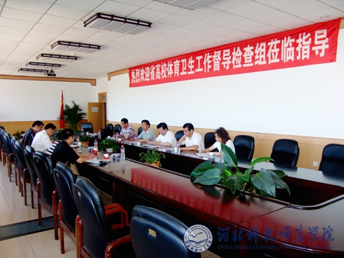 2009年6月22日,以华北科技学院朱景履教授为组长的河北省教育厅体育卫生工作督导检查组一行四人来我校进行体育与卫生工作督导检查。我校副院长王同坤、副院长房海及体育系主任陈庆合、副主任李会增,校医院副院长赵俊艳等陪同检查。